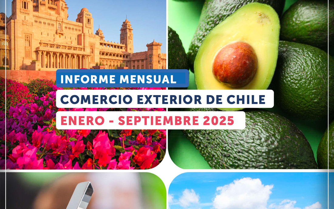En octubre el intercambio comercial de Chile ascendió a los US$ 11 mil millones, experimentando una ligera caída del 1% en relación con octubre de 2019 (-US$ 112 millones), debido a un descenso del 13,4% en las importaciones (-US$ 797 millones). Las exportaciones por su parte, crecieron 12,9% (+US$ 685 millones) mejorando el equilibrio del intercambio comercial del país, gracias a mayores embarques de cátodos de cobre, hierro, nitratos de potasio, carne de cerdo, abonos, neumáticos y manzanas frescas.