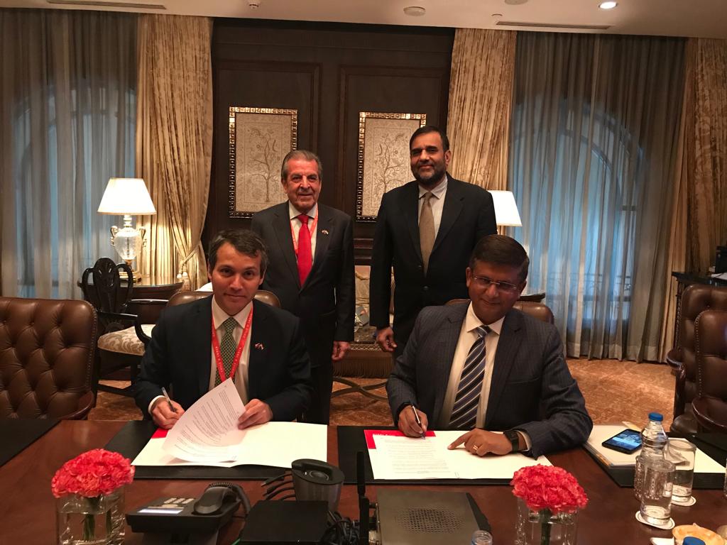 Nueva Delhi, India, 26 de agosto de 2019.- En el marco de la misión público – privada a India, hoy el Subsecretario de Relaciones Económicas Internacionales, Rodrigo Yáñez, firmó junto al Secretario de Comercio de India, Anup Wadawan, los términos de referencia para la profundización del acuerdo comercial entre ambos países.