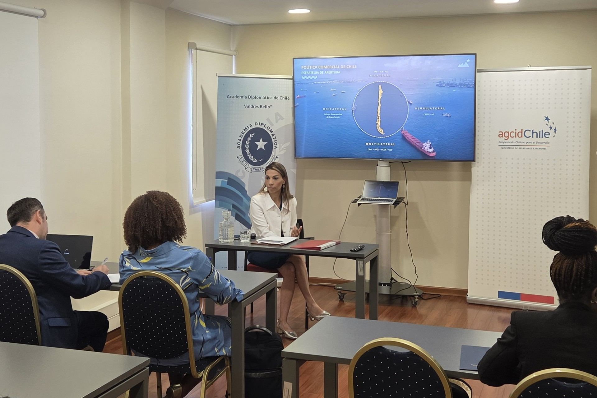 Santiago, 01 de diciembre de 2025. En el marco del Curso Internacional de la Academia Diplomática de Chile Andrés Bello, que se realizó entre el lunes 17 de noviembre y el viernes 5 de diciembre, y contó con representantes de Panamá, Guatemala, Honduras, República Dominicana, El Salvador, Paraguay, Costa Rica y Guyana, profesionales de la Subsecretaría de Relaciones Económicas Internacionales (SUBREI), encabezados por la Subsecretaria Claudia Sanhueza, presentaron los distintos aspectos de la diplomacia comercial del país.